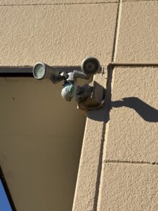 36年間使用していたセンサーライトが壊れてしまったため交換工事が行われました。