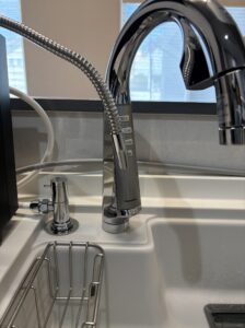キッチンの天板に穴を開けて分岐水栓を取り付けるかの2択になります。
