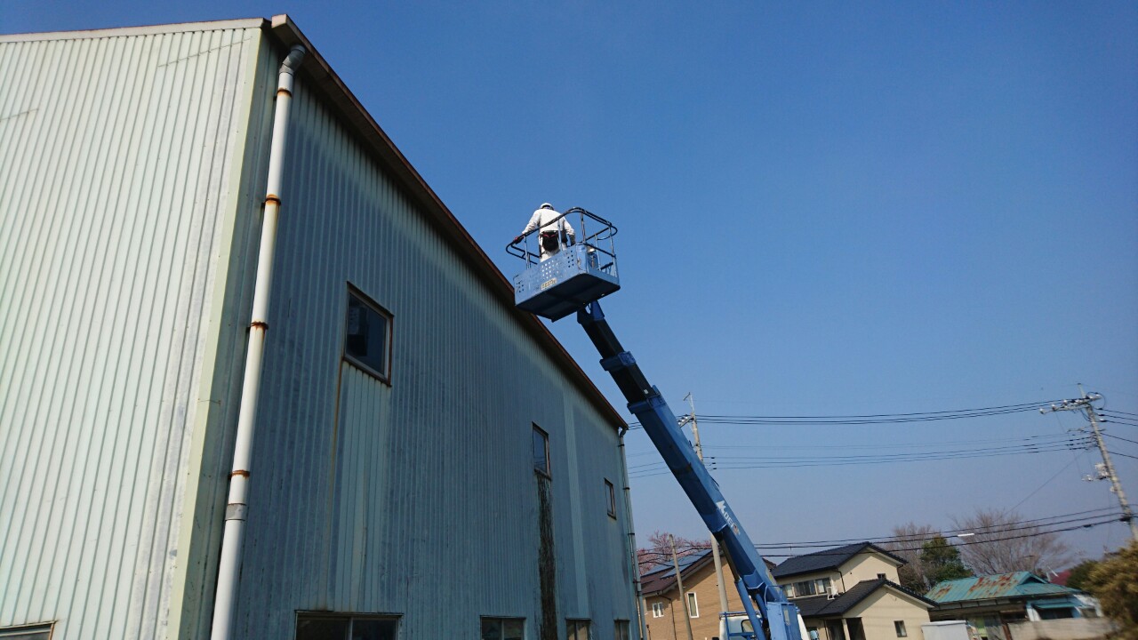 高所なため、作業車を使っての作業です。