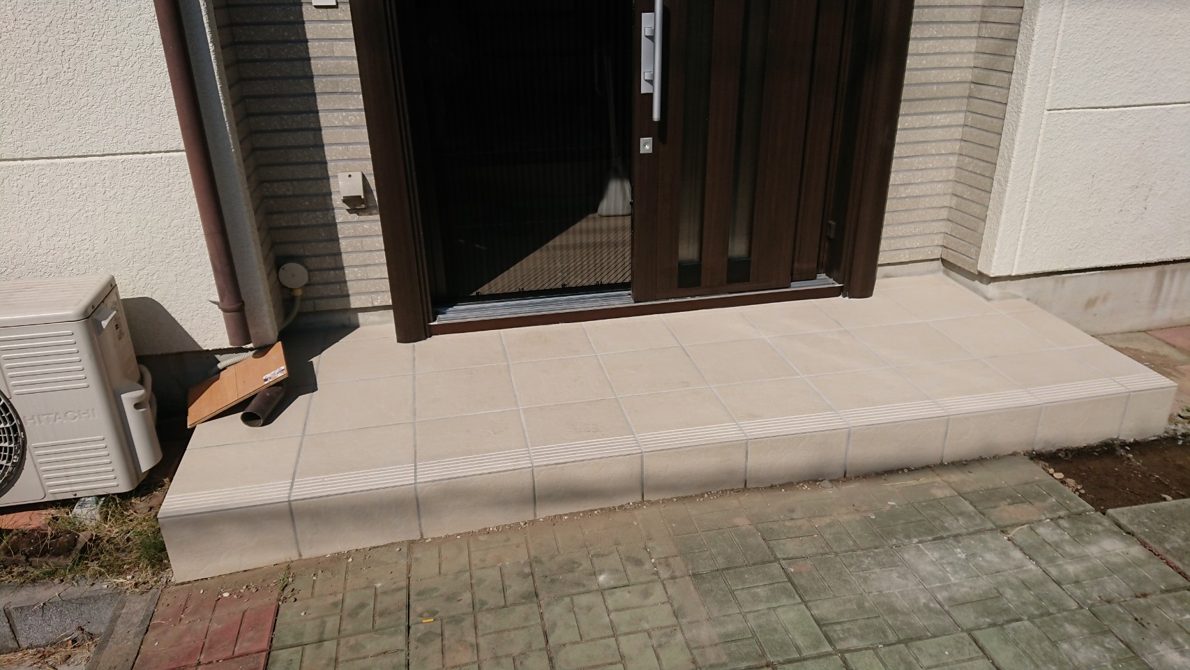 今までのタイルは雨に濡れると滑るので、滑らないタイルが良いとのことで