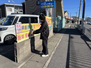 外看板担当の池田、小渕さんにお手伝いをお願いして貼り出し作業をしました😆