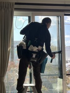 家中の窓を丁寧かつ手際よくクリーニングしていく様はさすがプロ!!