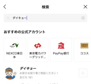 「ダイキョー」と打ってもらうと公式LINEが出てきます!