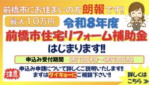 前橋市住宅リフォーム補助が、今年も決定しております!