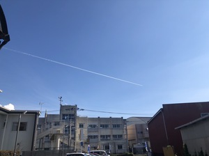先日、会社から出ると綺麗な飛行機雲が見えたので