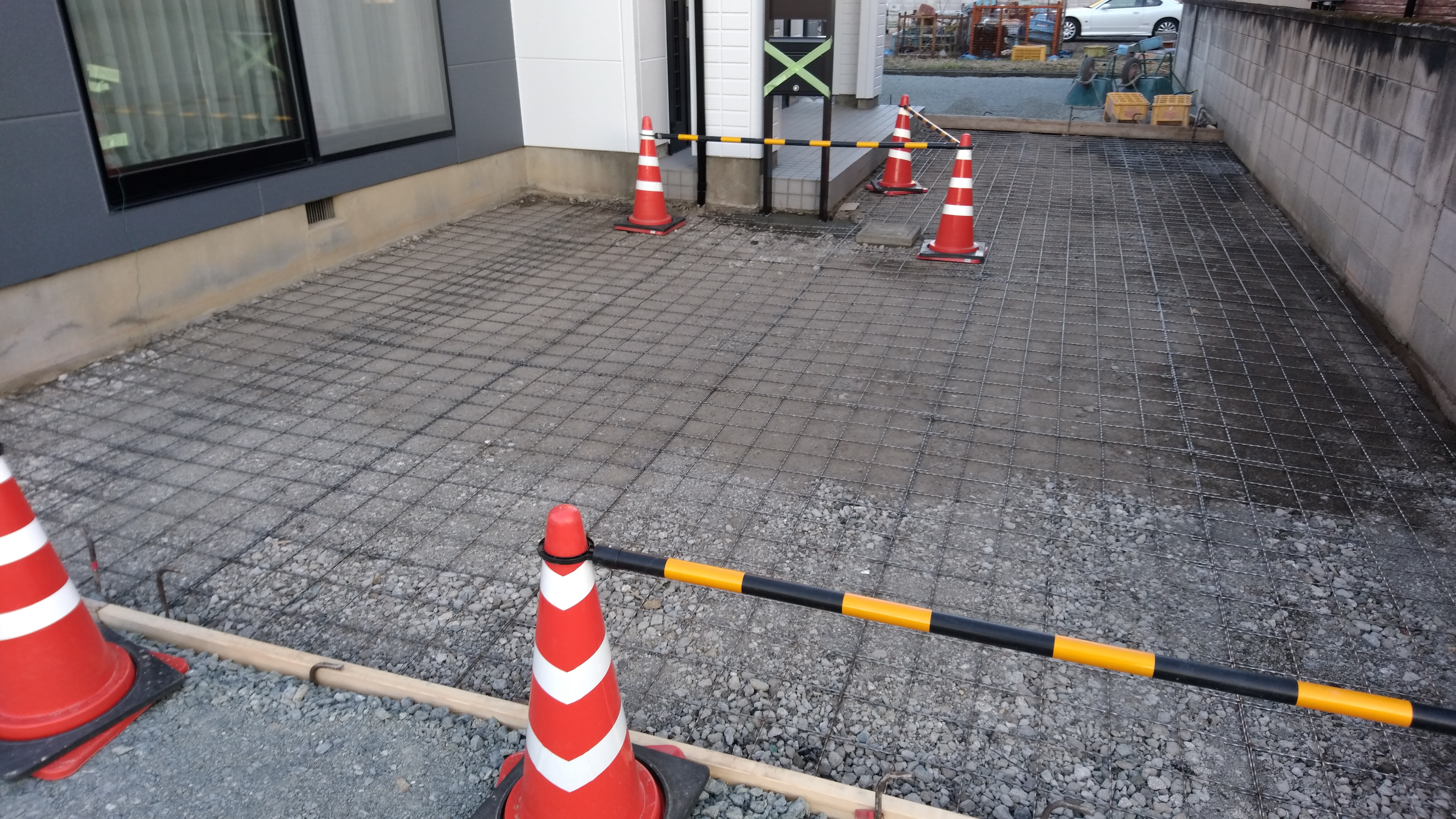 除草シートと砕石敷き、土間コンクリート打設前
