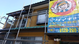 仮設トイレ設置、足場、高圧洗浄が完了し
