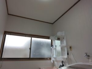 浴室入口まわりの仕上げ作業と脱衣場天壁クロス床クッションフロア貼り替えが行われました。