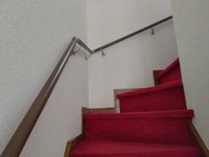 階段壁クロスの貼り替え完了後に新規手摺が行われました。