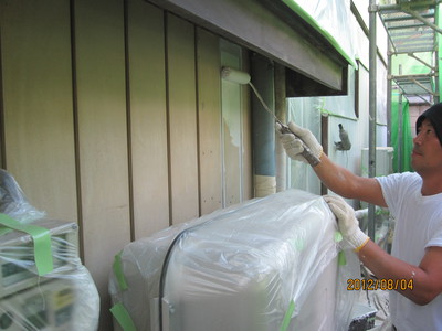 さび止めを塗ります、 勇士会 西川塗装さんです。