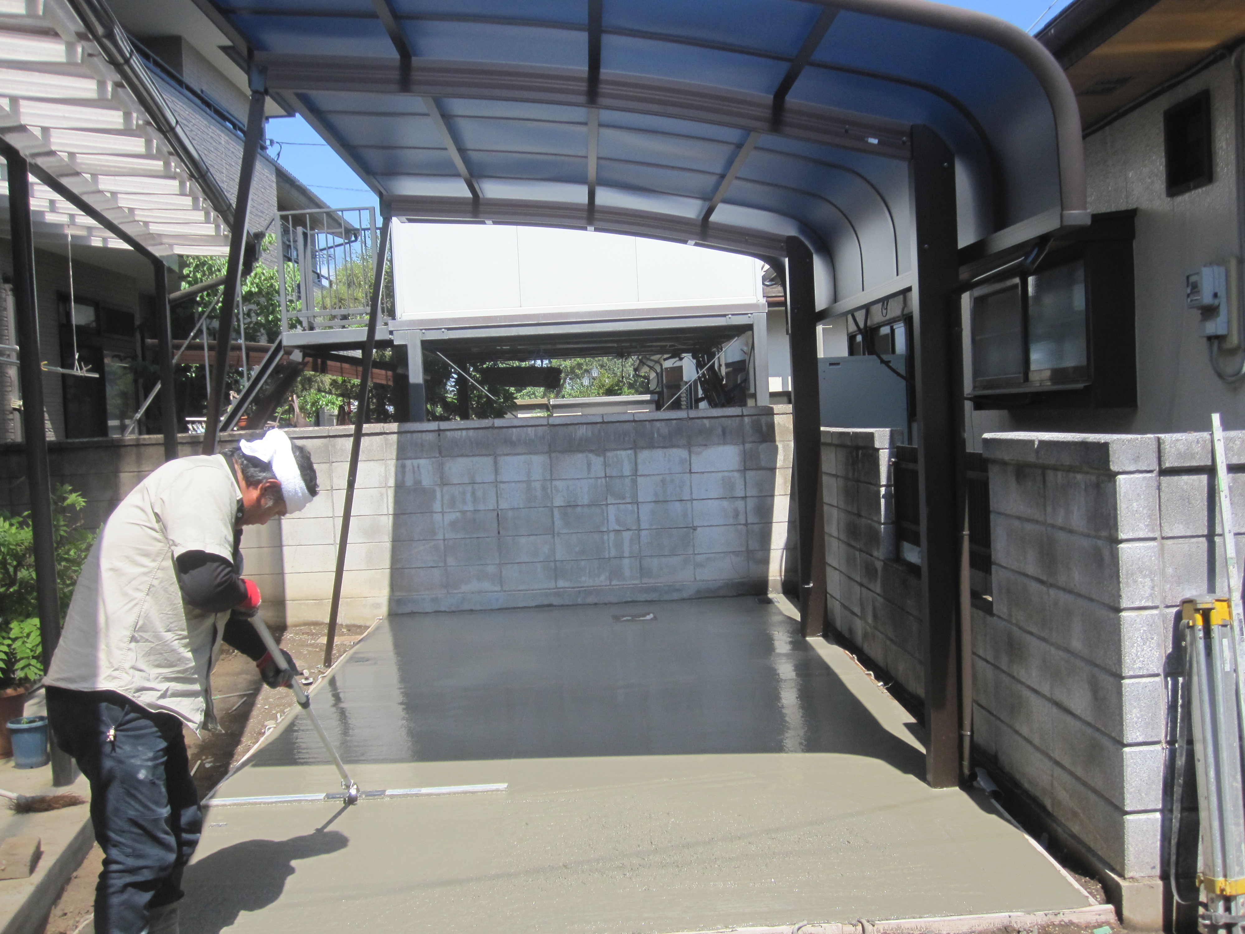 先日完成した前橋市 O 様邸カーポート工事 今日は土間コンクリート工事です