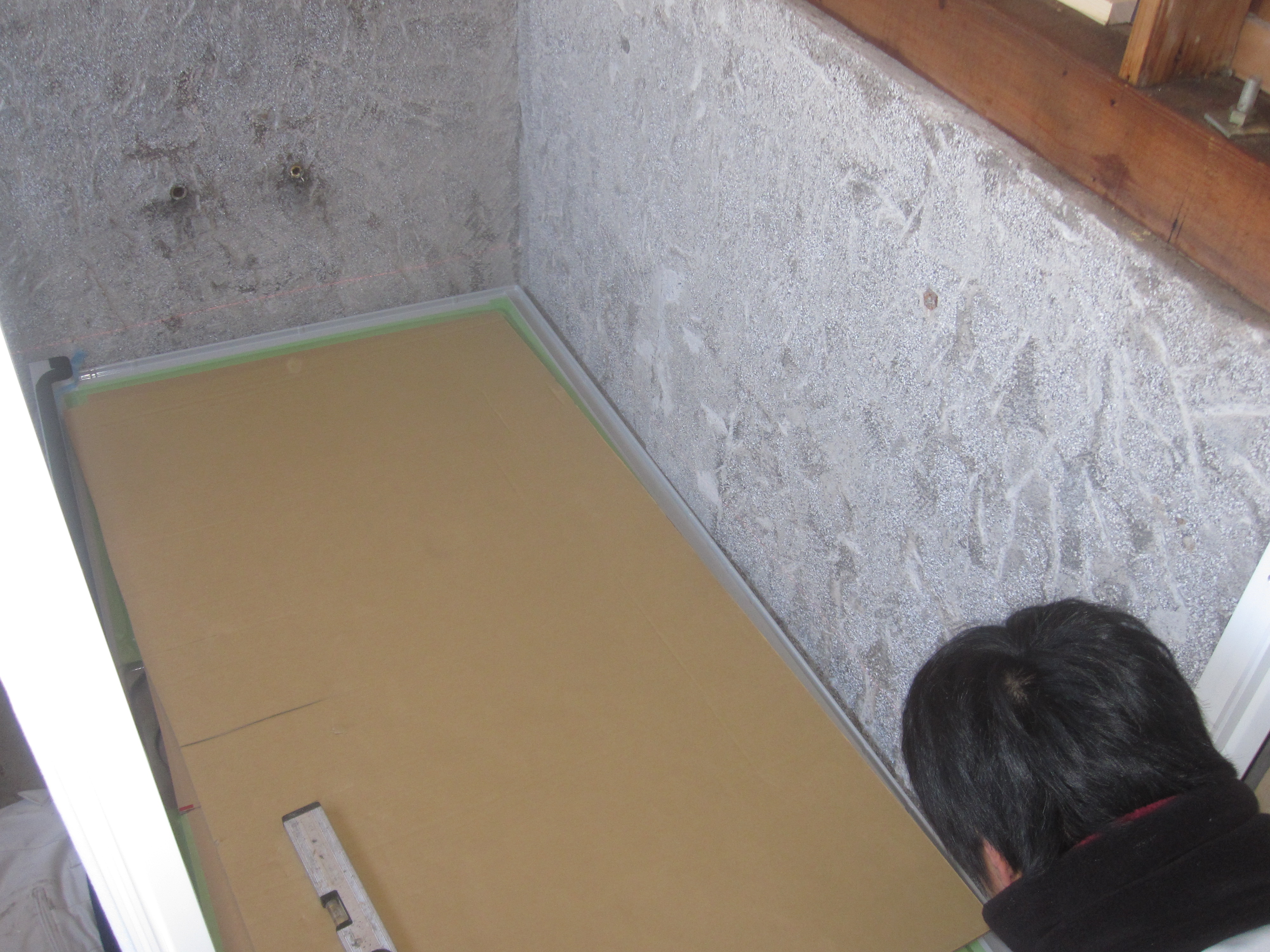 解体後の寸法もぴったりです、今日1日で組立完成、明日は入口の木工事の