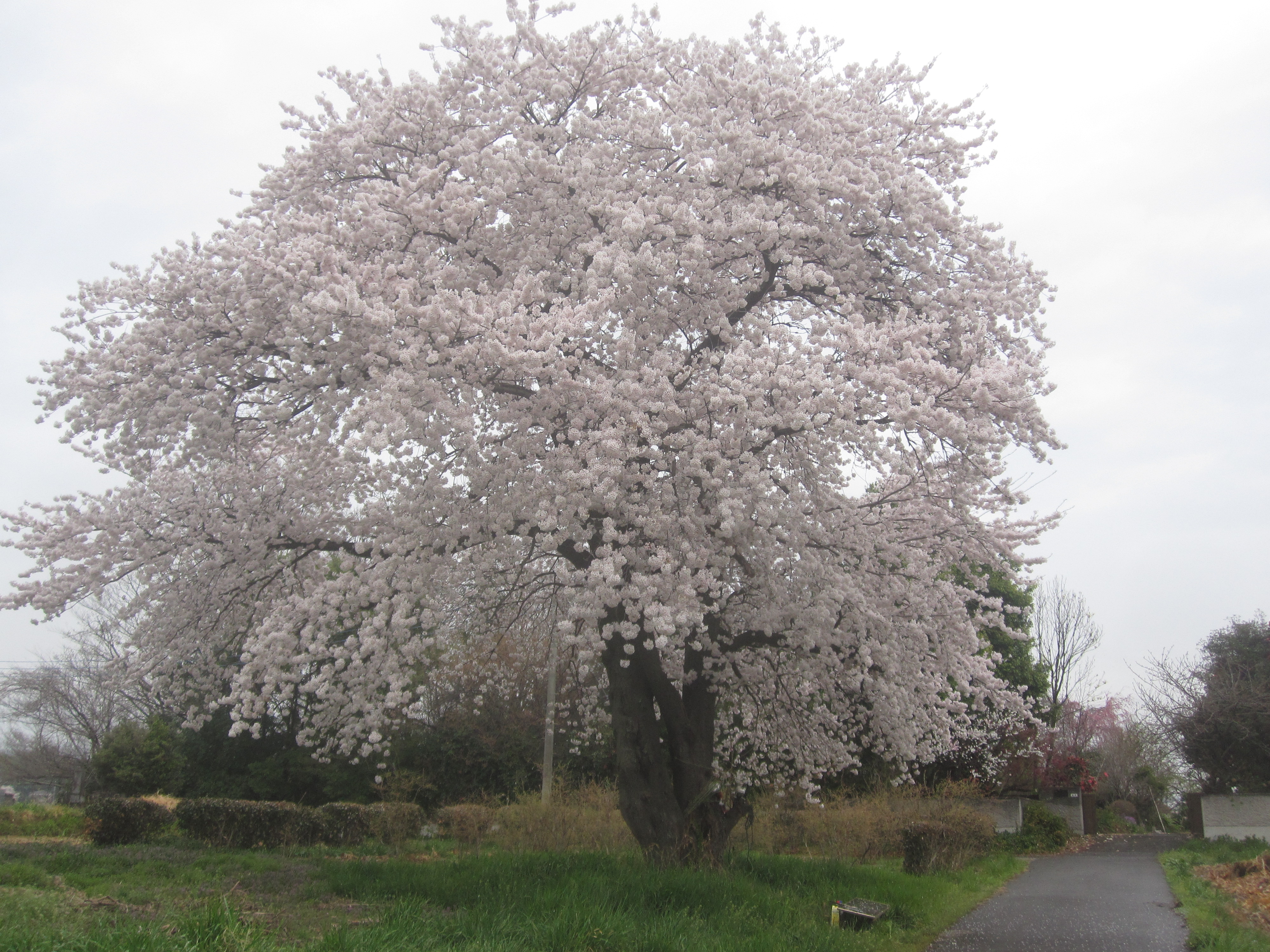 土曜日、花見をしました、親友のO君宅の一本桜です、