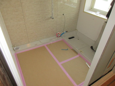今日、脱衣場のクロスとクッションフロアーも決まり