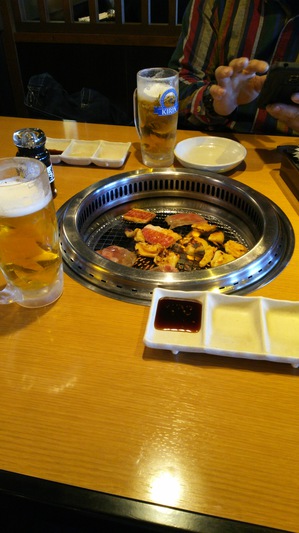 中止、帰ってきて路線バスで移動し、 焼肉 きんぐ で一杯、