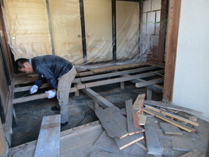 朝、8:00 現場着でスタートです、畳からフローリングに