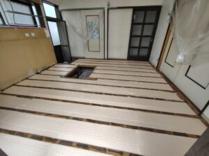 床に断熱材を入れフローリング貼りです