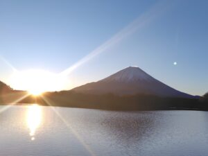 村浜荘さんに宿泊、朝の精進湖の日の出を拝ん