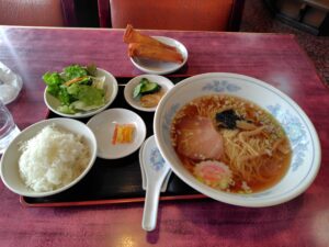 中華そば、春巻、ライス、サラダ、