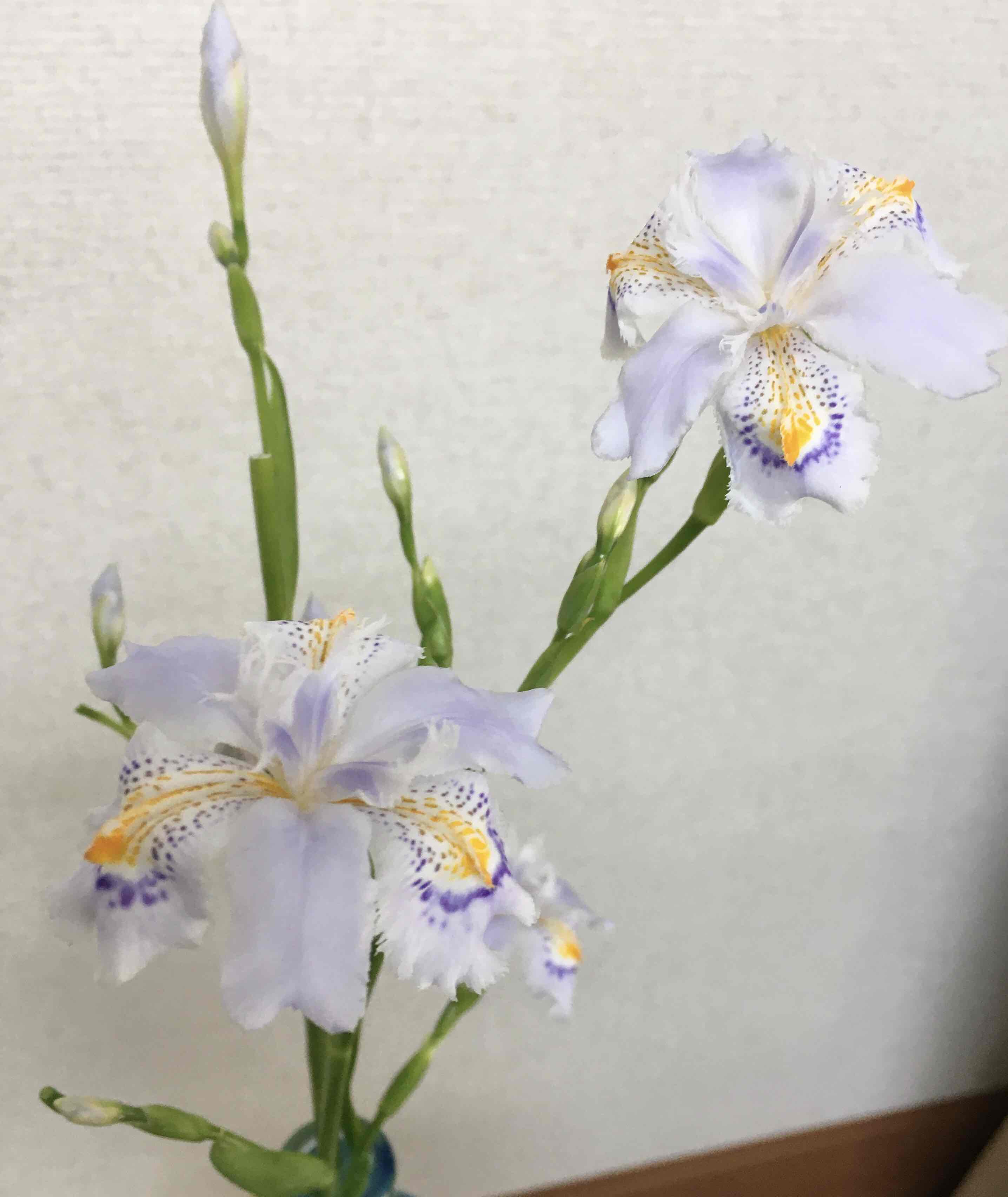 グーグルで『花 白と紫 ヒラヒラ』と検索したら出てきました。