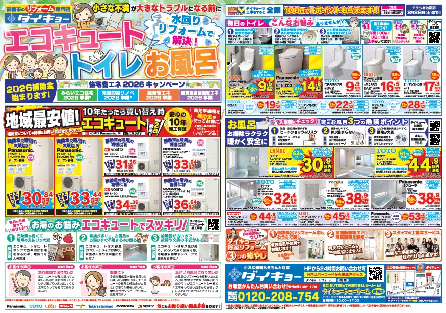 このたび、ダイキョーのチラシが新聞折込に入りました。 今月は『エコキュート・トイレ・お風呂』特集。 特にエコキュートは10年以上使用されている場合、 早めの交換をご検討いただくことをおすすめします。 …