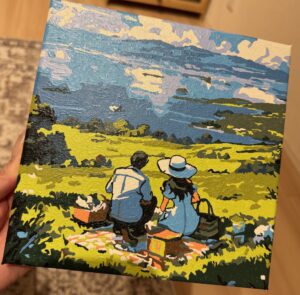 下絵が描かれていて、絵具もセットになっている「塗るだけの絵」が完成しました。