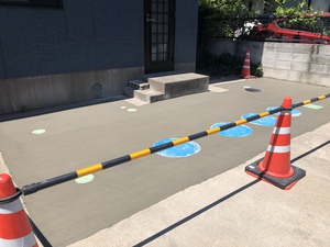 浄化槽やマスの蓋部分にコンクリートがつかないように養生してあります。