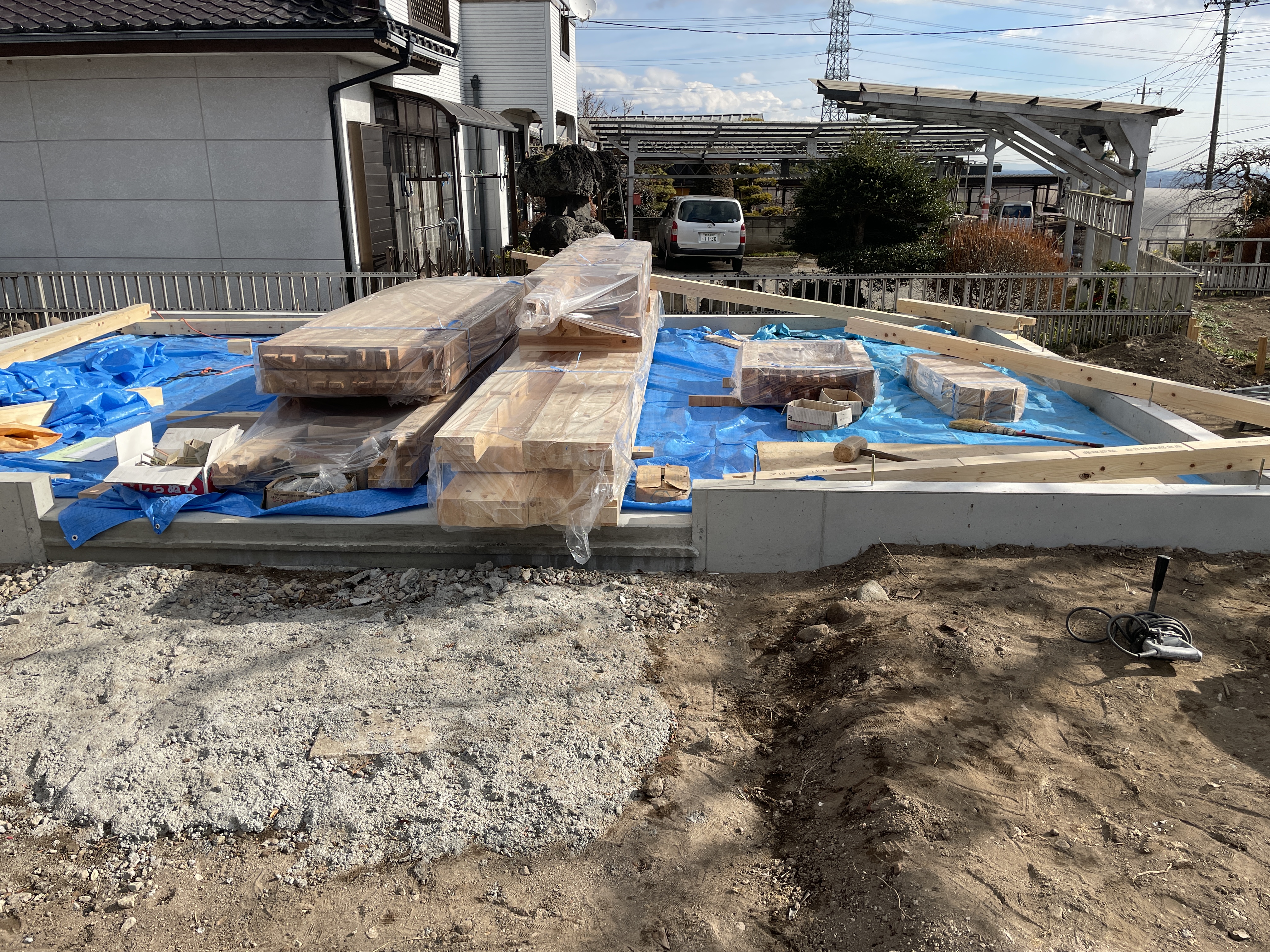 榛東村で物置の新築工事が着工しております。