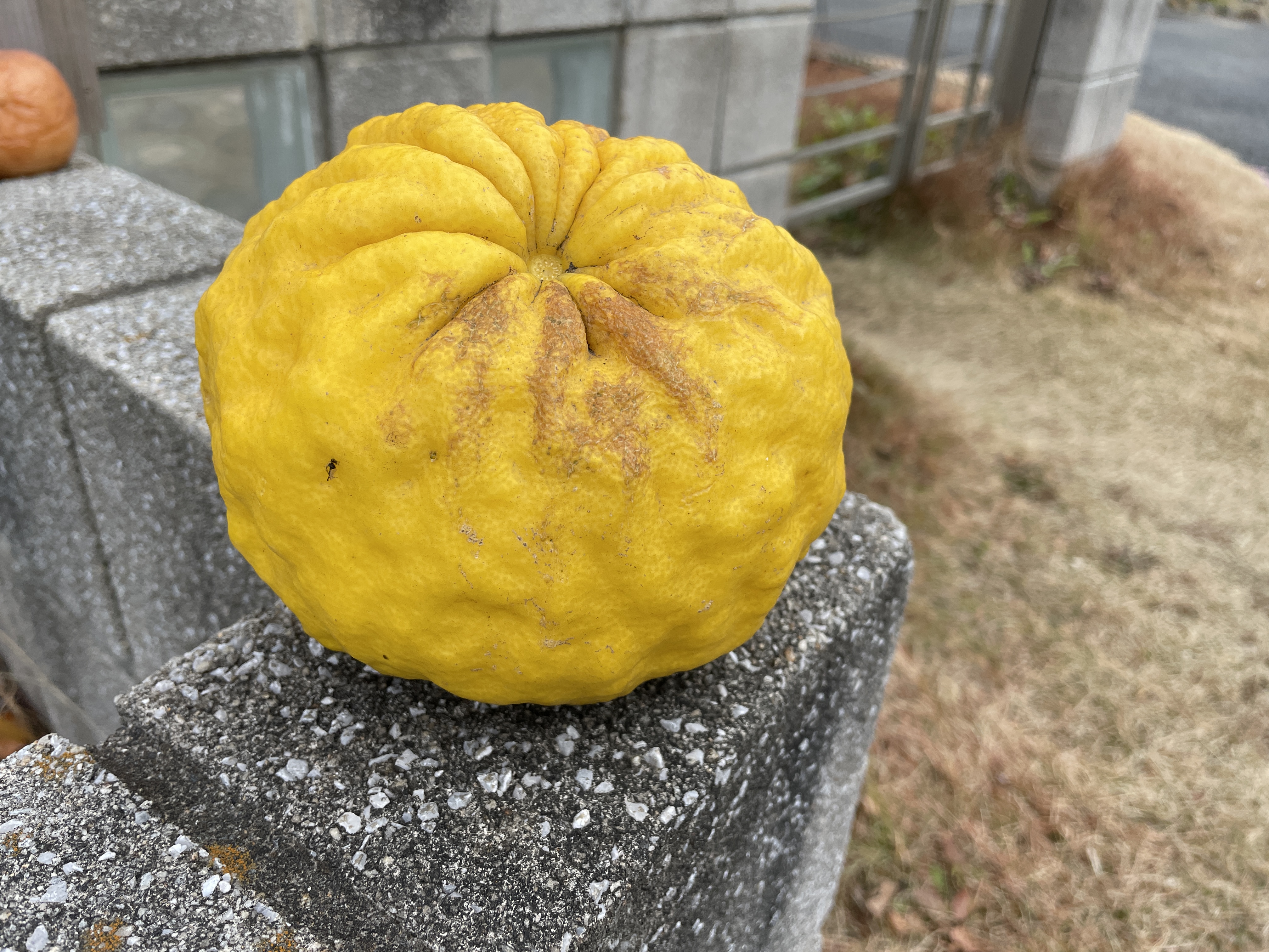 大きな柚で「獅子柚子」と呼ばれているそうです。