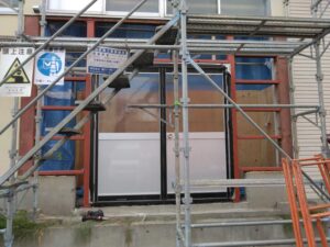 ドアサッシ取付:今井硝子店さんによる取付。これで大きな機械も搬入・搬出の心配なし