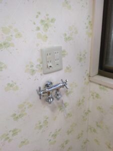 コンセント2口から4口へ増設と洗濯機用双口水栓の設置