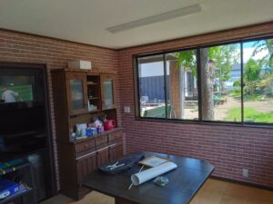 レンガ調のクロスでエレガントな雰囲気に様変わり