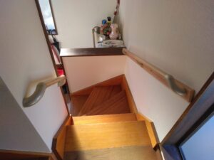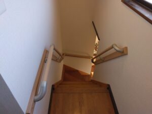 両側に手摺があることでスムーズな上り下りができ、安全な階段になりましたね。