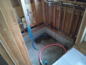 初日は浴室解体及び給水・給湯・追炊き配管工事が終了