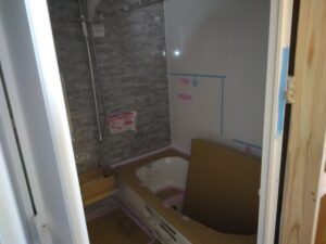 明日は浴室入口枠設置及び脱衣場の壁造作工事が行われます。