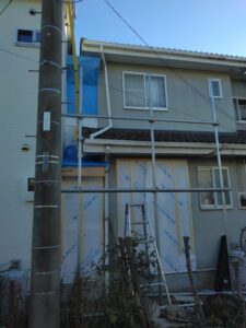 自ら足場架け作業をこなし、明日から外壁工事がスタートです。