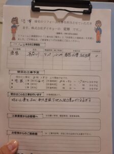 ダイキョーのリフォーム現場には、もれなく『工事日報』が置かれています。