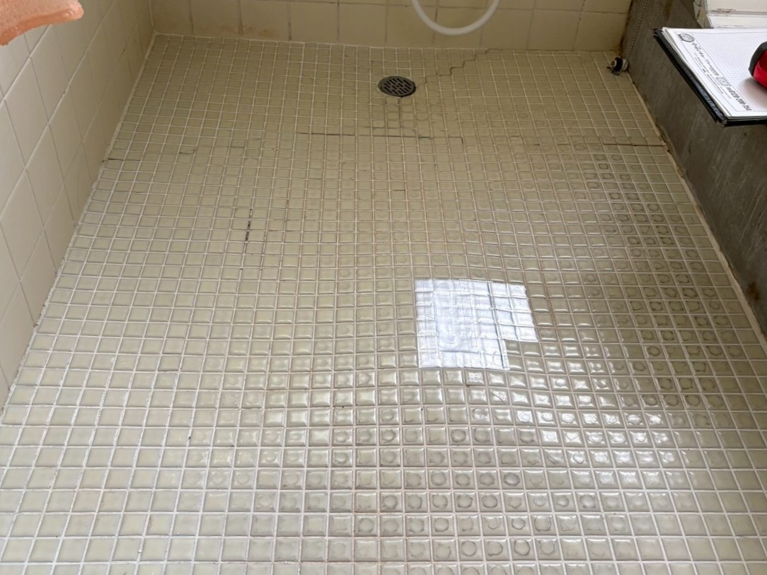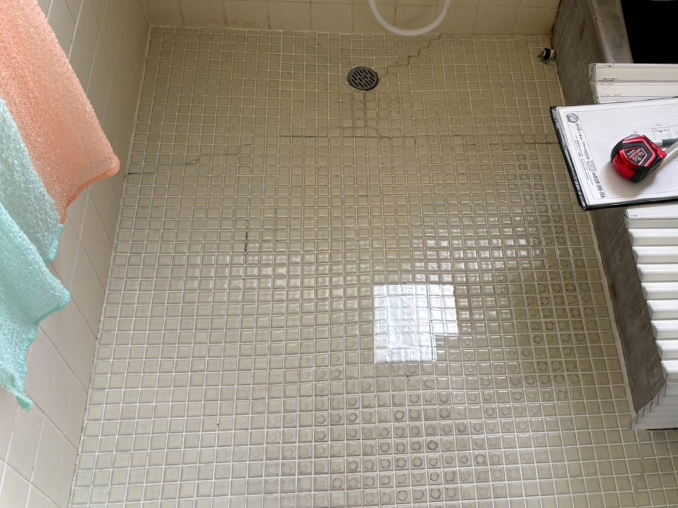 浴室床の劣化に伴い、タイルの張り替え工事のご依頼をいただきました。