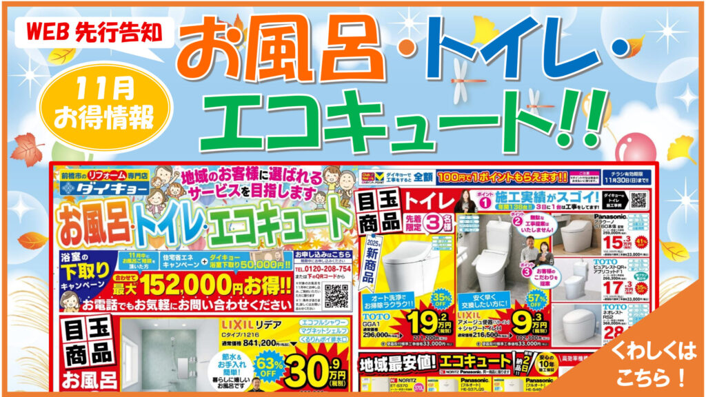 10月で大好評だったか「お風呂」「トイレ」の」目玉商品、11月も継続して販売します!